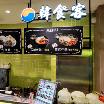 韓式料理美食街櫃位,點餐快,出餐快,專賣鍋類跟拌飯類。